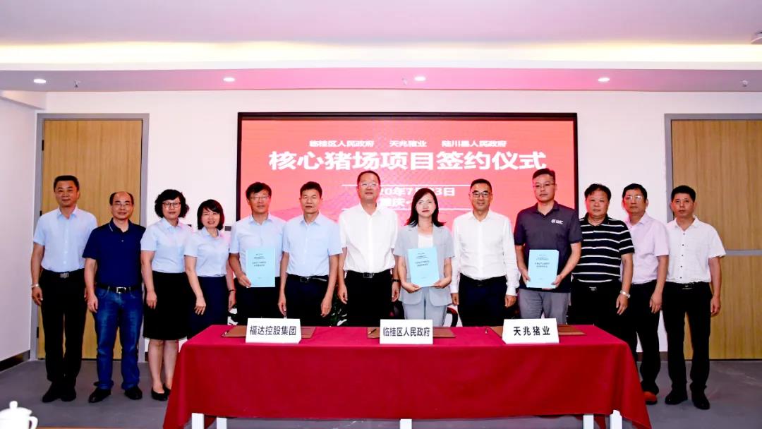 7月23日,玉林市陆川县人民政府与福达控股集团有限公司、四川天兆猪业股份有限公司签订了《生猪全产业链项目投资框架协议》;同日,桂林市临桂区人民政府与福达控股集团有限公司、四川天兆猪业股份有限公司签署了《种猪核心场项目投资框架协议》,标志着福达集团加快向农产品冷链的上游产业布局发展。