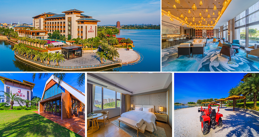 酒店依其得天独厚的独岛优势,景观设计上充分呈现出亚热带度假目的地的休闲放松,无需远游,即可享受亚热带度假风情与城市度假完美结合。酒店的房间设计充分考虑度假观景需求,每间房从不同角度观赏玉东湖、克拉湾水上乐园及园博园景观,足不出户即可放松身心。轻奢的定义不是单纯意义上奢华的外部装潢,璟象更在意的是,每一位客人亲身感受到的舒适与放松。来自美国的床垫品牌KINGKOIL,配以高支度的家纺床上用品,填充白鹅绒的羽绒枕柔软亲肤,全身心地拥抱一次彻底放松的深睡眠。步入酒店的爱丽坊餐厅,享受美食的同时玉东湖景一览无余。定制中西式餐饮,主厨精选当地时令食材,提供精致的西餐菜肴及特色本地菜;精选店酒及各式鸡尾酒,为您的旅途增添浪漫情怀。亦可承接不同接待规格的包厢及大型宴会等各类餐饮定制形式。